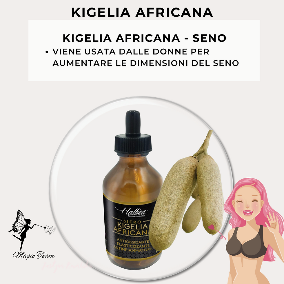 Proprietà L' Estratto glicolico "Kigelia" si ottiene dalla macerazione in glicole propilenico e acqua della corteccia della Kigelia Africana. è un estratto vegetale ricco di saponine, flavonoidi e fitosteroli che gli conferiscono proprietà anti radicaliche, idratanti, rassodanti e di stimolazione del microcircolo. Inoltre grazie alla sua particolare composizione peptidica è in grado di rendere compatto il derma, formando ad un vero e proprio reticolo tensore invisibile. Tradizionalmente le prime a scoprire le virtù cosmetiche della kigelia africana sono state le donne Lebous di Capo Verde, che cospargevano il seno con una poltiglia ricavata dalla polpa dei frutti, per stimolarne la crescita e rassodarlo. Ai giorni nostri l'efficacia dell'estratto di kigelia come rassodante e tensore in prodotti per il seno è stata confermata da test clinici, che ne hanno dimostrato anche la funzionalità come astrigente e dermopurificante nel trattamento delle pelli impure.